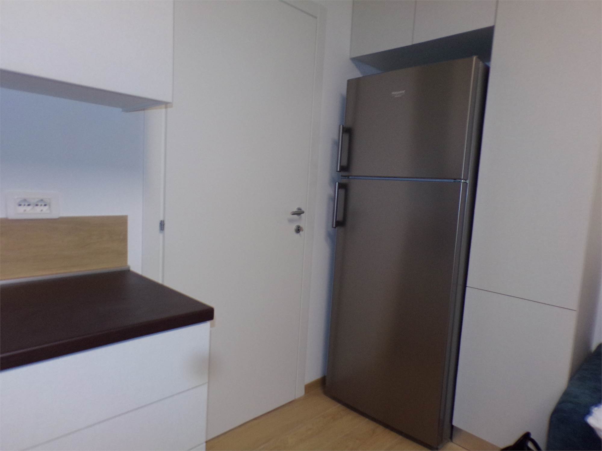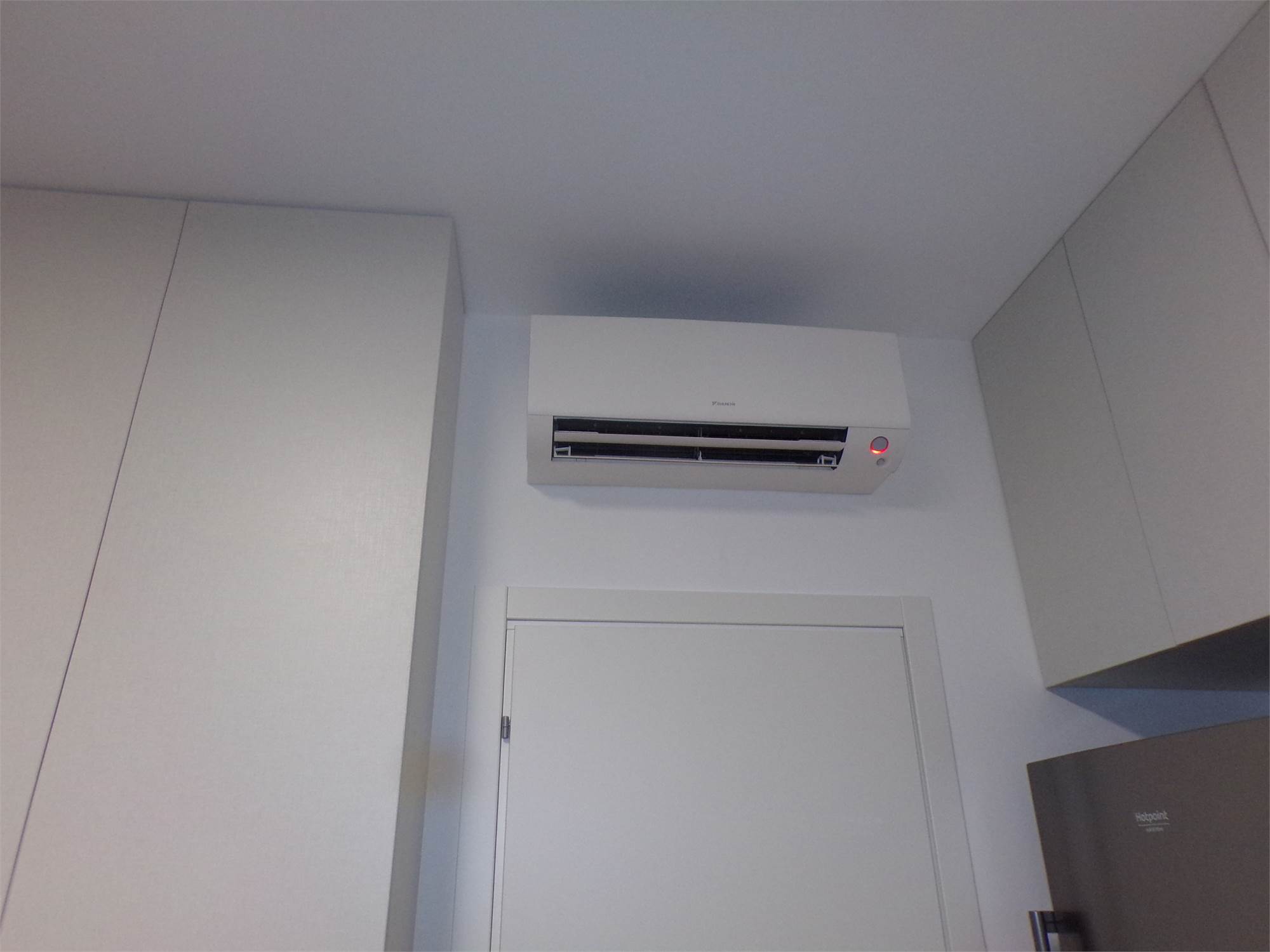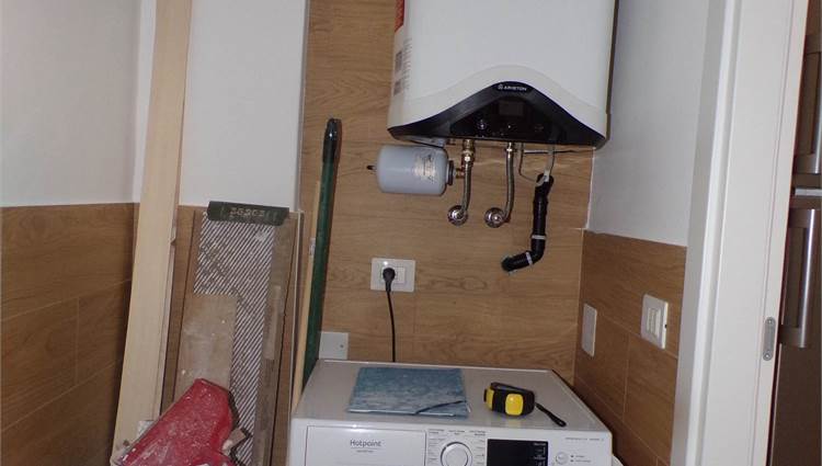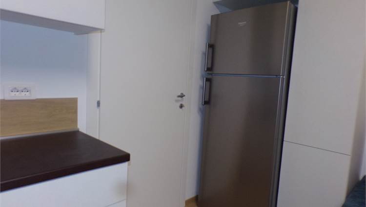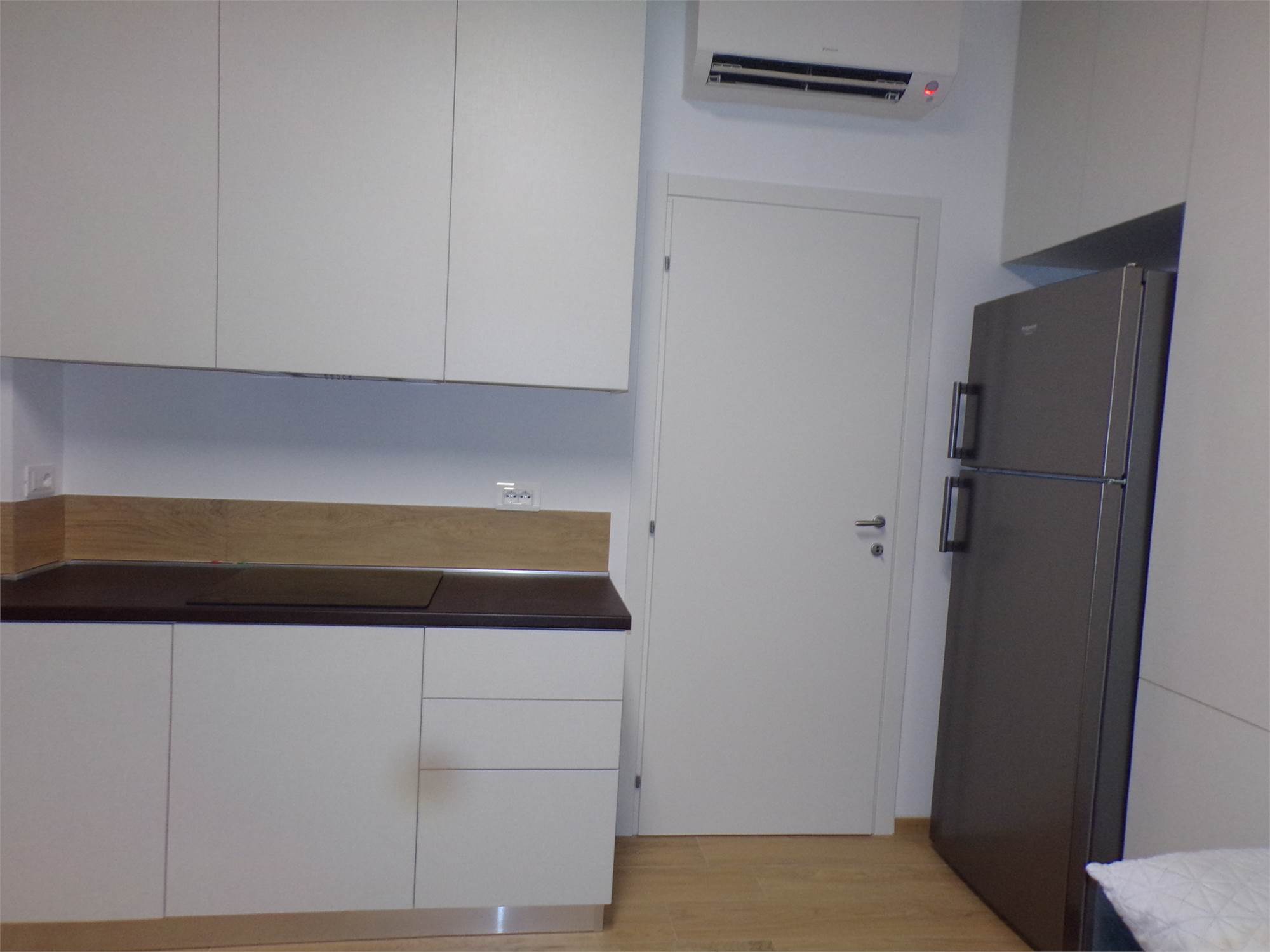 Cucina completa di elettrodomestici con piano cottura ad induzione, climatizzazione inverter (lavasciuga, televisore), rete Wi-fi, portone blindato.