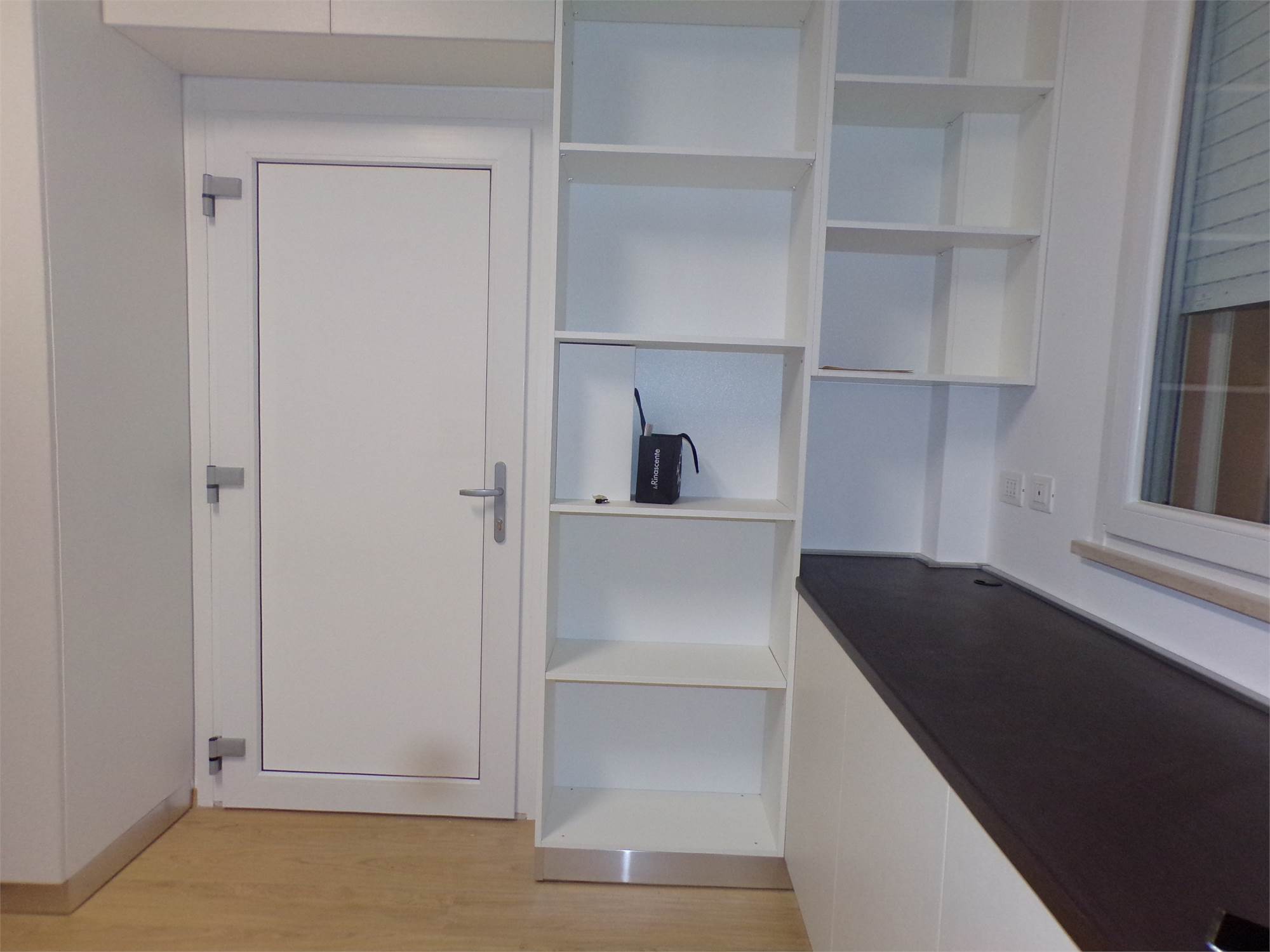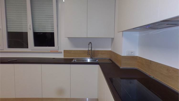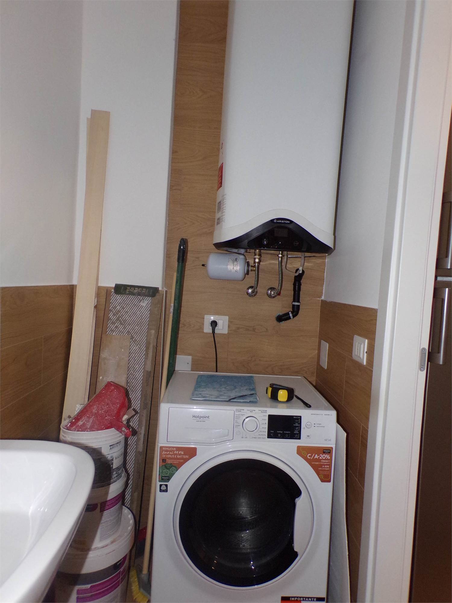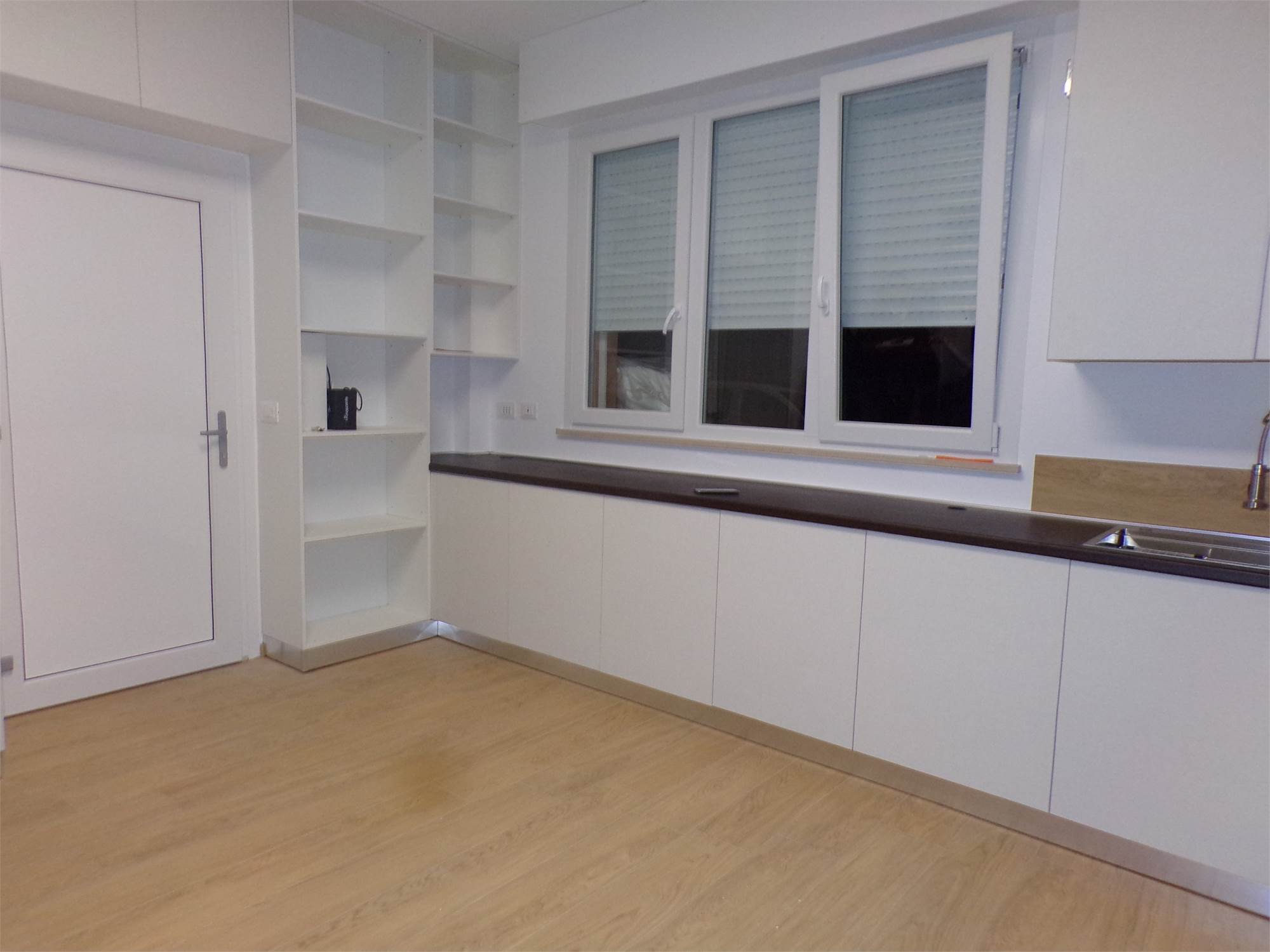 Cucina completa di elettrodomestici con piano cottura ad induzione, climatizzazione inverter (lavasciuga, televisore), rete Wi-fi, portone blindato.
