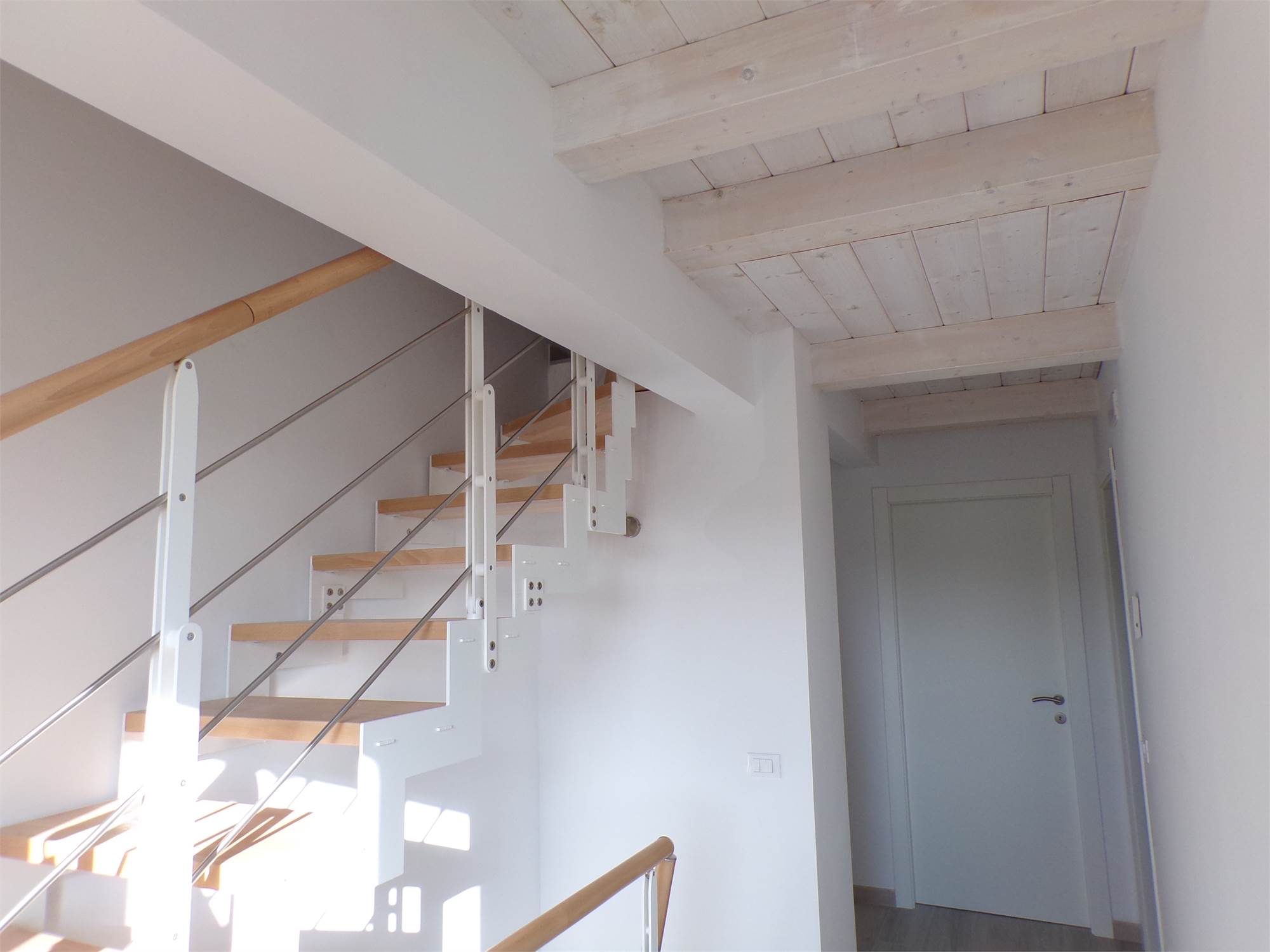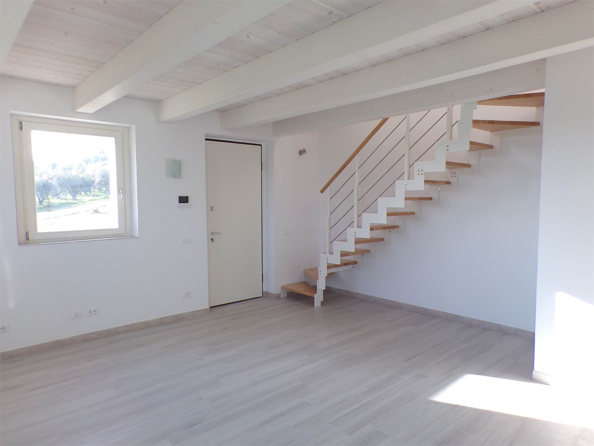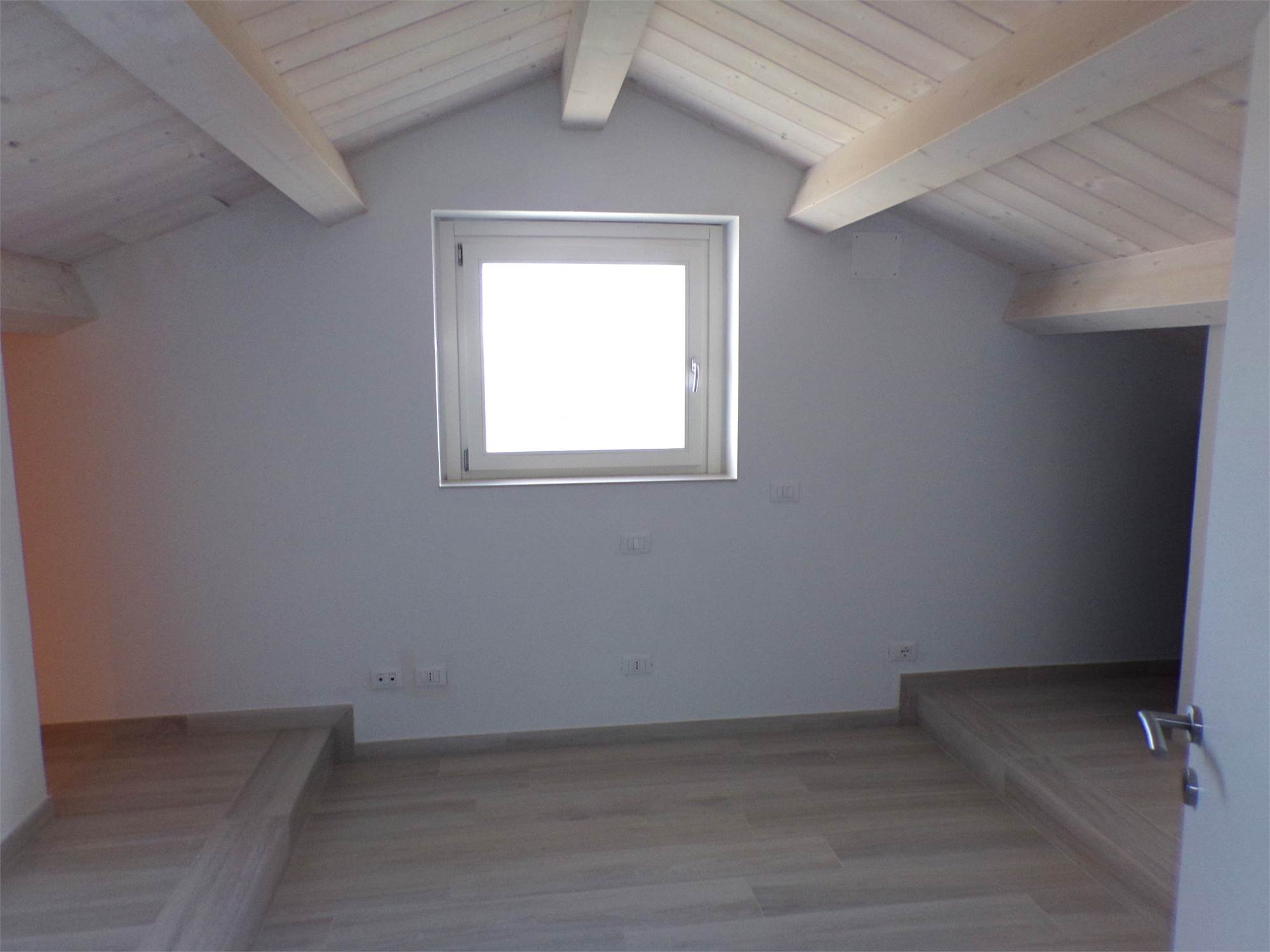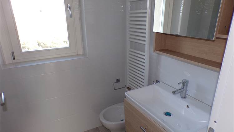 L'abitazione su due livelli oltre mansarda dispone di Ingresso indipendente, soggiorno, cucina ed un bagno al piano terreno; al primo piano due camere da letto con due bagni; al piano mansardato ulteriore stanza con bagno; posto auto e giardino (non sono graditi animali) con vista aperta sulle colline marchigiane.