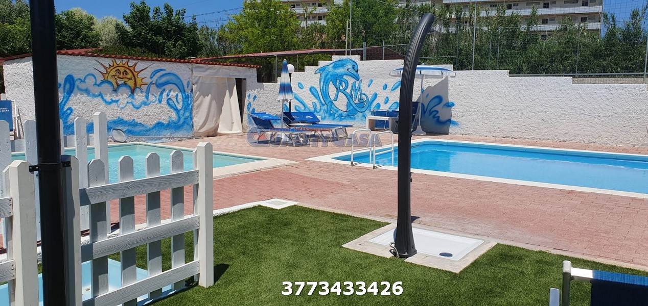 All'ingresso troviamo locale bar con ampia tettoia di 200 m² e reception, 2 piscine rispettivamente di 56 m² e 20 m² con due docce solari e ampio solarium con prato sintetico di pregio per lettini e ombrelloni. Le piazzole autorizzate sono 78 ma possono essere aumentate e 19 colonnine di erogazione energia elettrica con 6/8 attacchi ogni colonnina.
