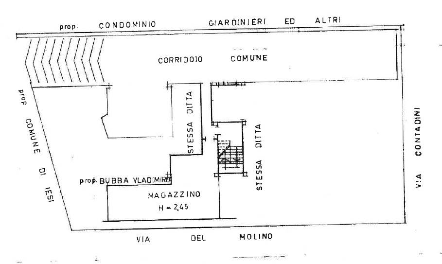 Agenzia immobiliare QualityCasa propone in vendita MAGAZZINO zona piscina a Jesi di 45 m²: Ingresso pedonale e vano unico. Altezza 2,45 metri e uso della corte condominiale. Discrete condizioni.